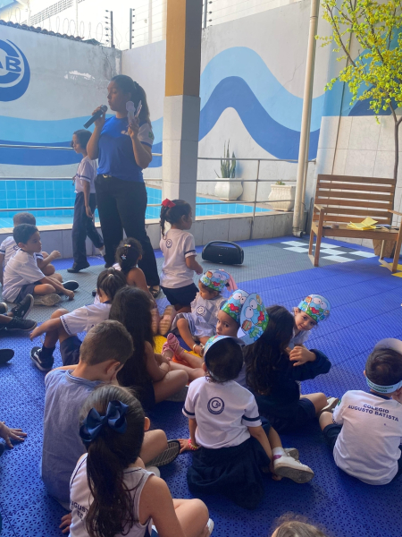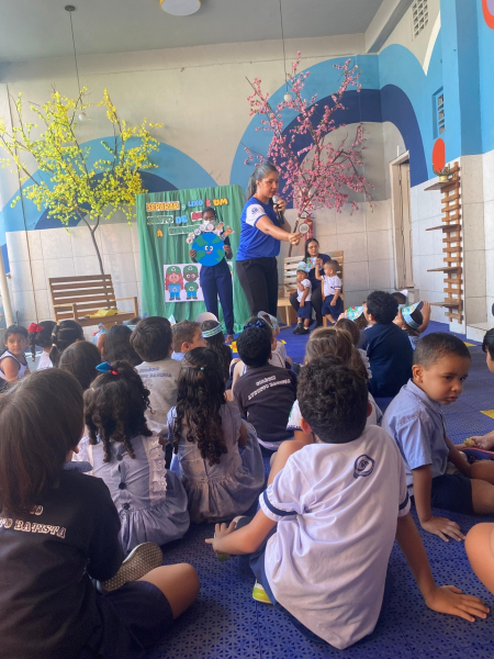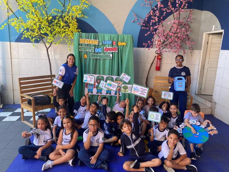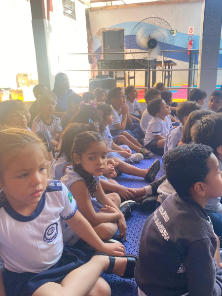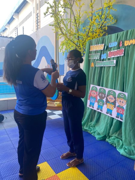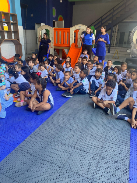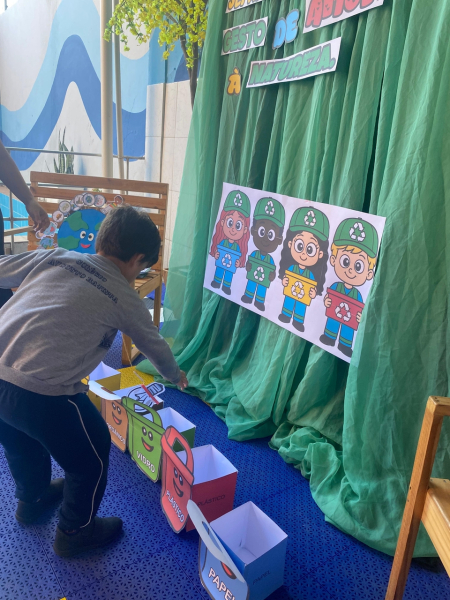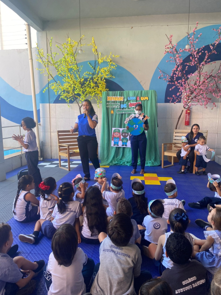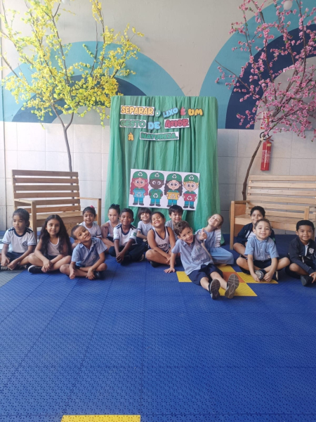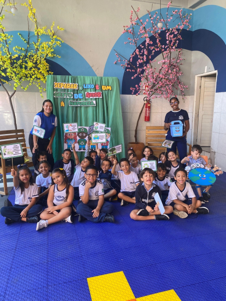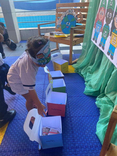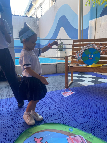 Houve contação de história explicando de forma lúdica sobre a importância de preservar o meio ambiente. Bem como uma dinâmica interativa em que as crianças pescavam o lixo que estava "poluindo o rio" e depois os despejaram nas lixeiras que correspondiam ao material de cada um.